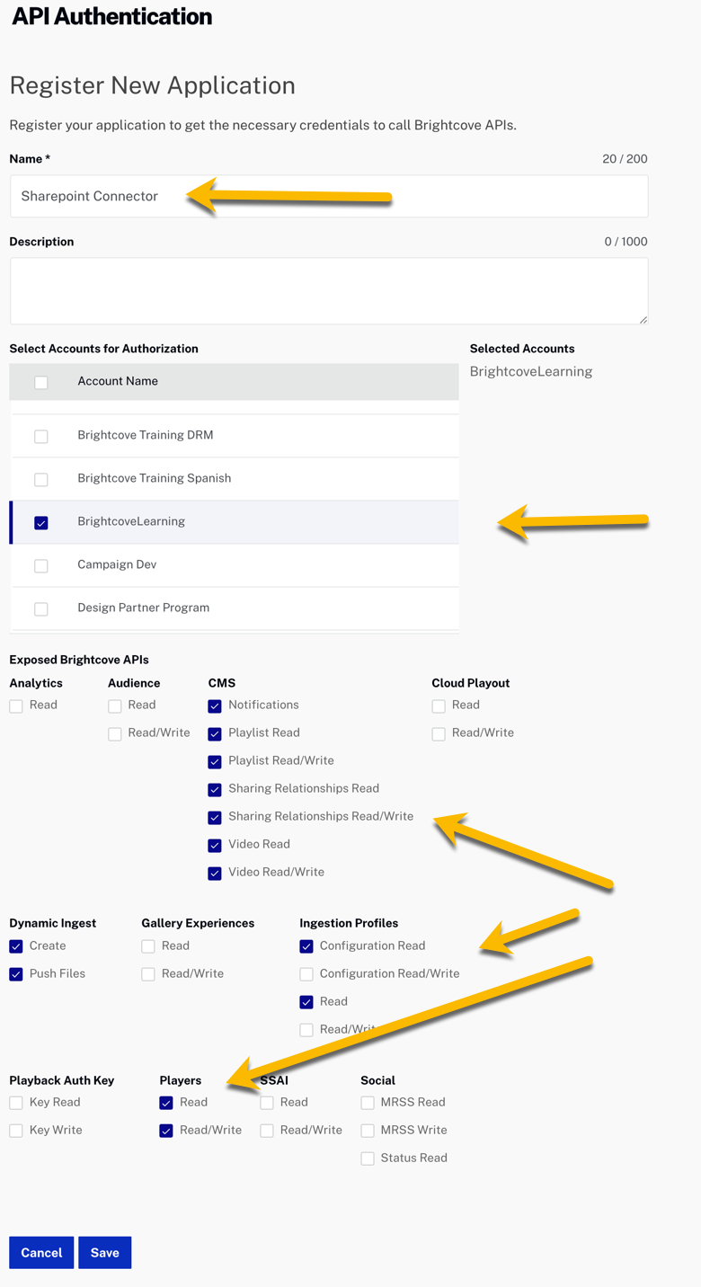 Brightcove コネクタを使用する前に、以下の手順に従って必要なリストをプロビジョニングする必要があります。
