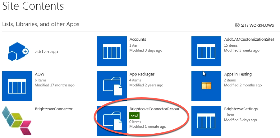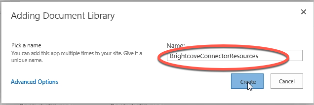 - そうでない場合は、BrightcoveConnectorResourcesという新しいドキュメントライブラリを作成します