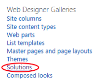 - Brightcoveアプリがインストールされているサイトコレクションのルートサイトで、[サイトの設定]に移動します-> Webデザイナーギャラリー->ソリューション。
