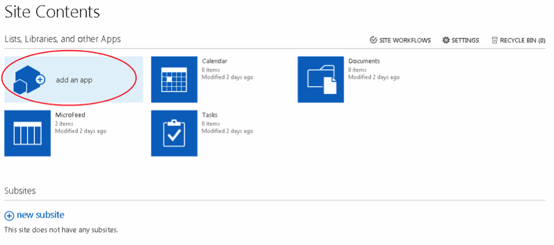 - ユーザーが SharePoint 用のアプリを追加する前に、ファーム管理者グループのメンバーは、SharePoint 用のアプリをサポートするように環境を構成する必要があります。詳細については、を参照してください。 SharePoint2013用のアプリの環境を構成しますまたSharePoint 2016 また SharePoint 2019。