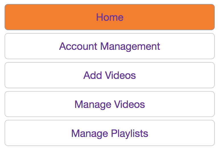 いずれの場合も、ユーザーはコネクタアプリのホームページに移動します。このページは、追加の会社固有のメッセージやリンクなどを含めるようにクライアントによってさらに構成できます。インストールセクションで説明したように、ユーザーのグループメンバーシップによっては、[アカウント管理] タブと [ビデオの追加] タブが表示される場合と表示されない場合があります。