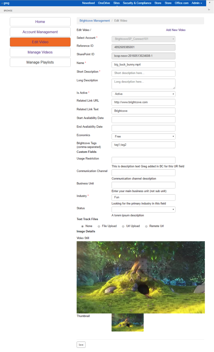 - 保存 -変更をコミットし、Video Cloudでプレイリストを更新するプロセスを開始します。注-プレイリストはSharePointに保存されません。